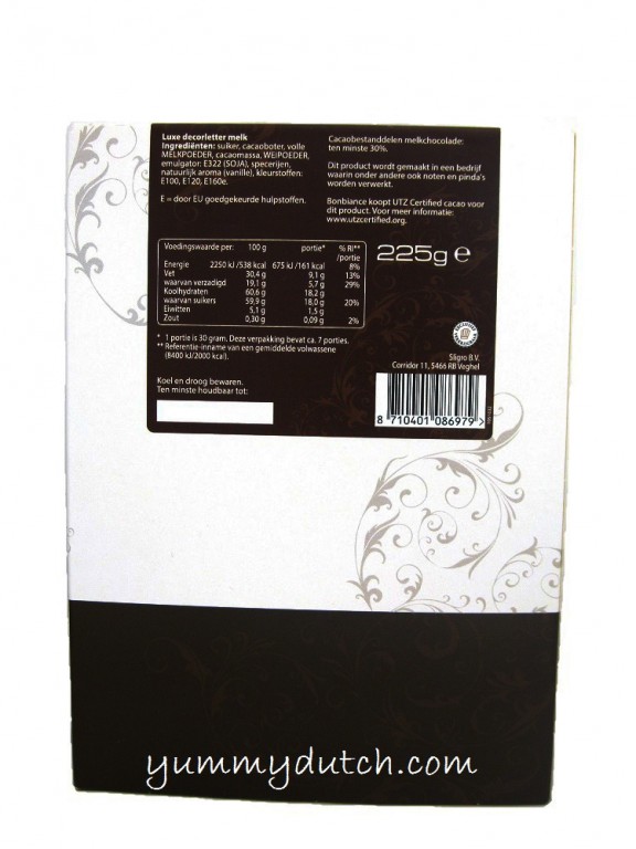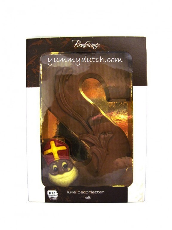 Deze luxe chocolade letter is gemaakt van melk chocolade, met decoratie van witte en melkchocolade. De letter is gedecoreerd met Sinterklaas, Zwarte Piet of Amerigo gemaakt van gekleurde chocolade. De letter weegt netto 225 gram, dus lekker dik!