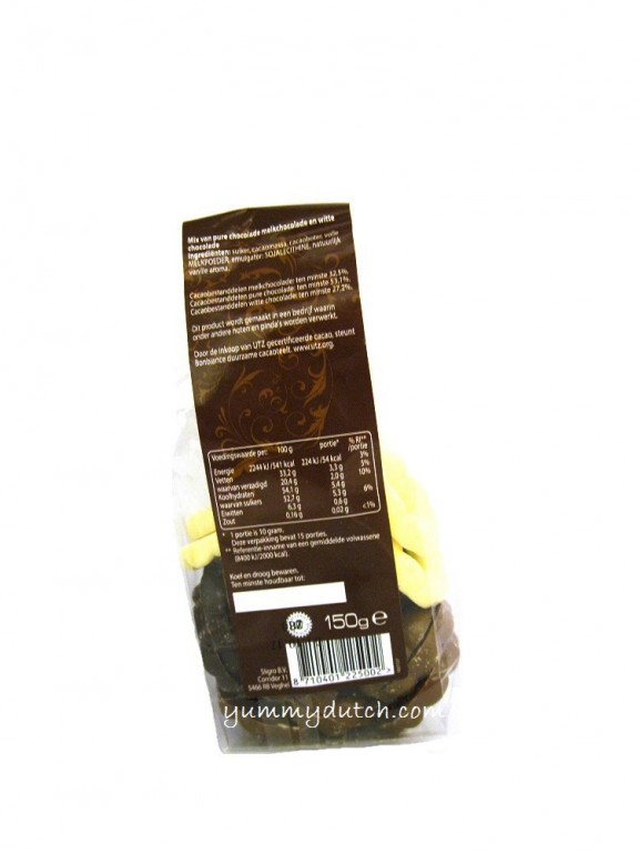 Mix van chocokransjes van melk-, puur- en witte chocolade.