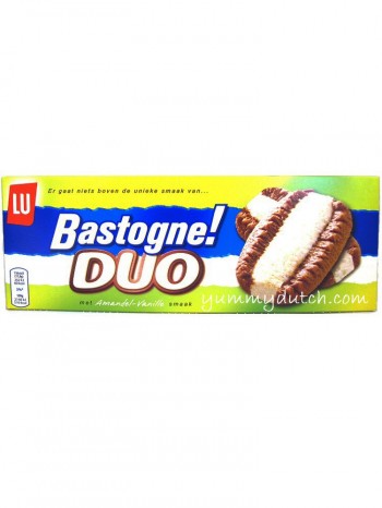 Heelijke variant op de standaard bastogne: de bastogne duo! Lekker krokant en kruimelig, heerlijke kandijbiscuit met een een heerlijke smaakvolle laag amandel in het midden.