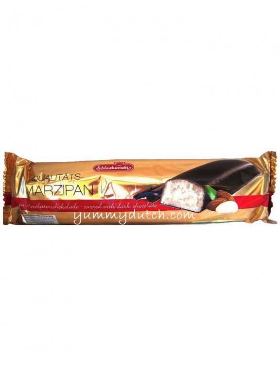 Deze premium kwaliteit marsepein van de welbekende marsepein specialist Schlukwerder is gemaakt met extra hoge kwaliteit speciaal geselecteerde amadelen en is bedekt met heerlijke pure chocolade. Een grote reep van 500gr. Een perfect cadeau voor Sinterklaas of andere gelegenheid.