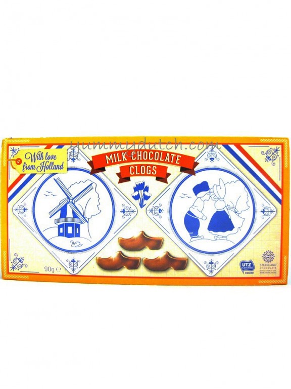 Melk chocolade klompjes van Steenland is een perfect cadeau: met typische Nederlandse plaatjes, aparte ruimte op de achterzijde om een tekst te schrijven en "With love from Holland" labeltje.