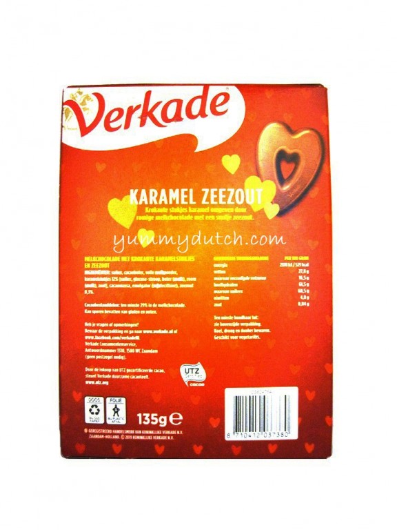 Deze chocolade hart van Verkade is gemaakt van heerlijke melkchocolade met krokante stukjes karamel in combinatie met een korreltje zeezout. Elke hap zal je verrassen!  Perfect voor Valentijn of Sinterklaas!