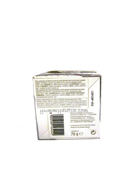 A Christmas Edition of Raffaello: fine waffels with coconut filling and a whole almond covered with grated coconut. Packed in a giftbox.