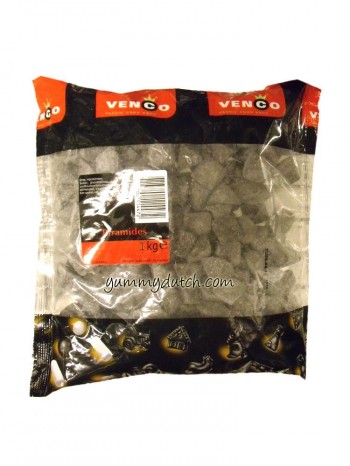 Venco Pyramides is truly a special licorice candy. The have a soft, airy body with a mild licorice flavor. A balanced combination of mild licorice extract and salmiak makes this candy very addictive. The outside has a light powder layer for an even more exciting sensation.